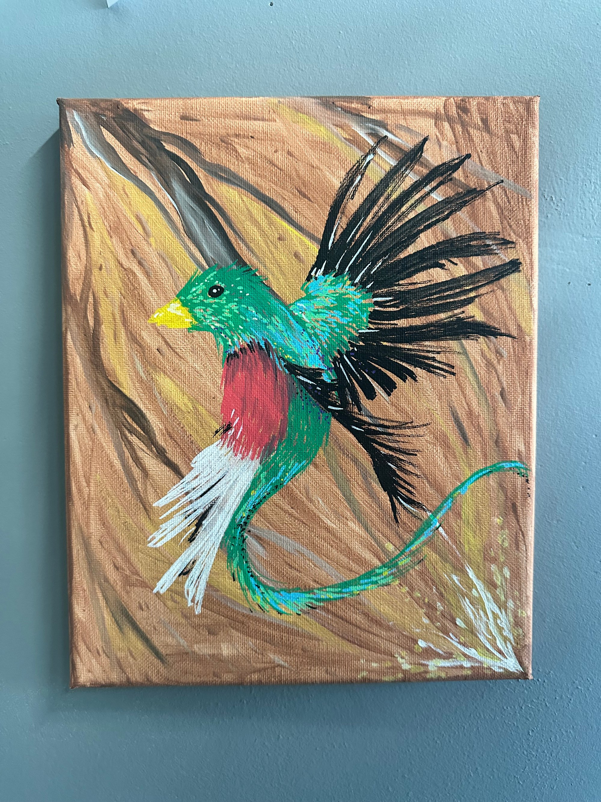 Posca art of the, Quetzal Bird on a 8x10 canvas “Quetzal” can be referred to a tropical bird or Guatemala’s currency